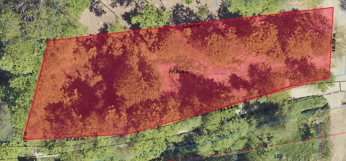 Działka niezarośnięta – brak krzaków i dużych drzew, teren łatwy do zagospodarowania.